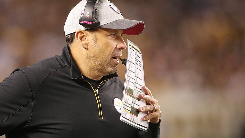 Oct 1, 2015; Pittsburgh, PA, USA; Pittsburgh Steelers offensive coordinator Todd Haley calls a play against the Baltimore Ravens during the third quarter at Heinz Field. The Ravens won 23-20 in overtime. Mandatory Credit: Charles LeClaire-USA TODAY Sports