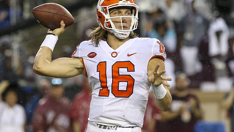 Clemson star quarterback Trevor Lawrence went down in some pain in the first quarter of Saturday’s game against Texas A&M.