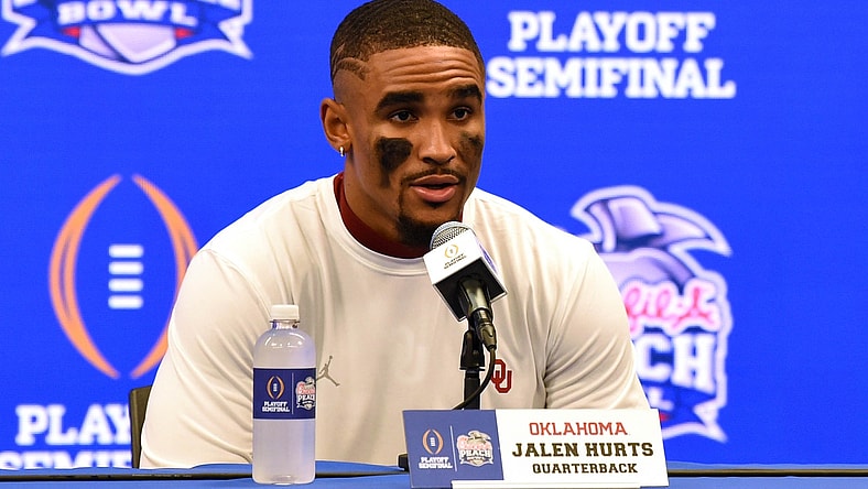 Jalen Hurts had a rough final game as a collegiate athlete Saturday as his Oklahoma Sooners were blown out of the building by LSU in the Peach Bowl. Afterward, speaking to media during his postgame press conference, he showed wisdom beyond his years while discussing the disappointing result.