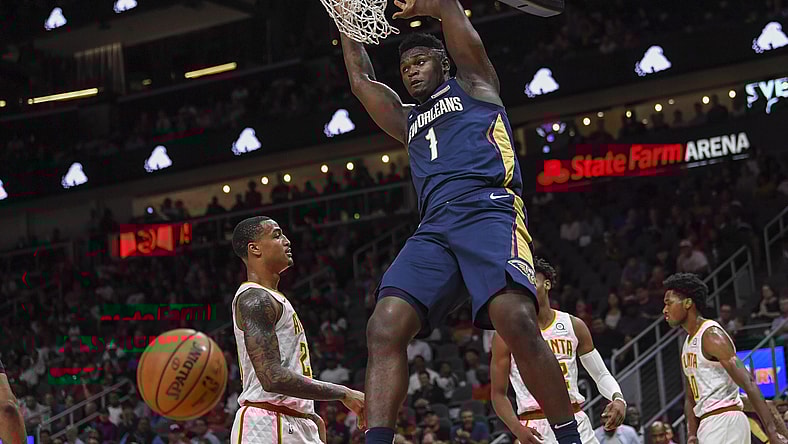 In his second career game, Zion Williamson threw down the first alley-oop of his young career, scoring the first points of the game Friday night for the New Orleans Pelicans.