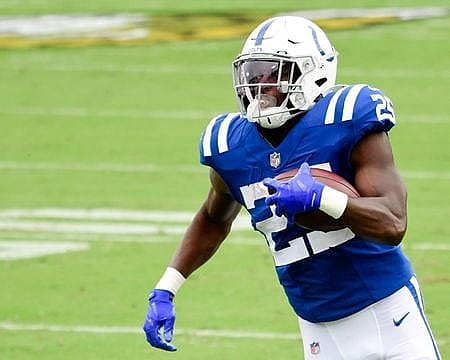 He had four carries for 26 yards and three receptions for 30 yards for the Colts, who will rely on rookie Jonathan Taylor and third-year back Nyheim Hines in his absence.