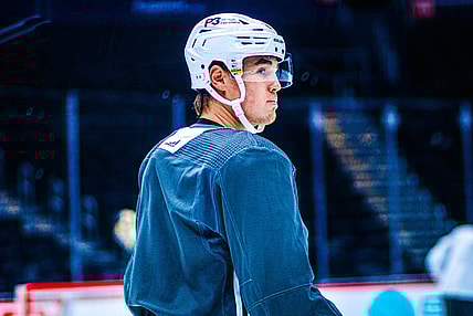 In their first practice after the NHL All-Star break, Vegas Golden Knights defenseman Zach Whitecloud skated in a regular practice…