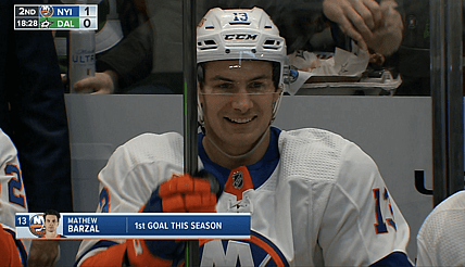 It may have taken 19 games, but New York Islanders forward Mathew Barzal scored his first two goals of the…
