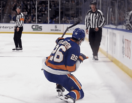 New York Islanders forward Oliver Wahlstrom does the Frans Nielsen to give the Islanders a 3-0 lead in the second…