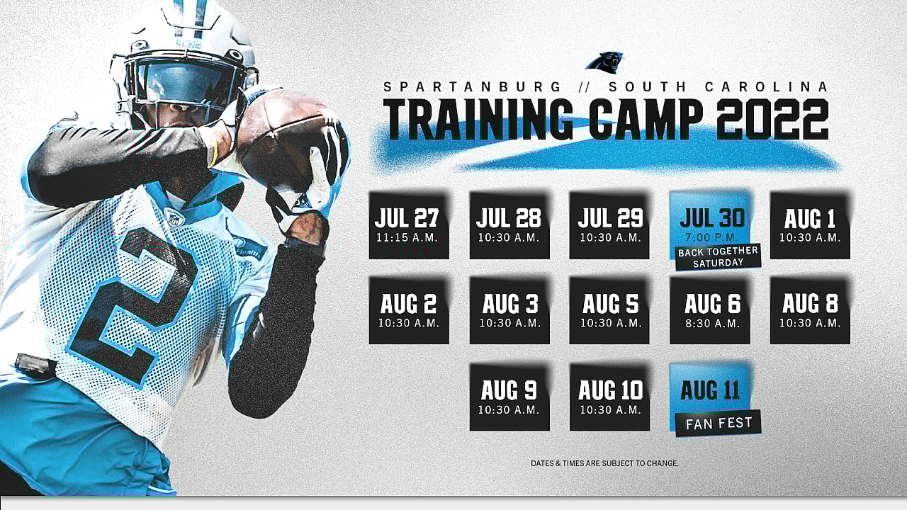 The Carolina Panthers will report to training camp on July 26. Here’s the full Panthers training camp schedule for practices open to the public. Though it should be noted, times and dates are subject to change, depending on weather.