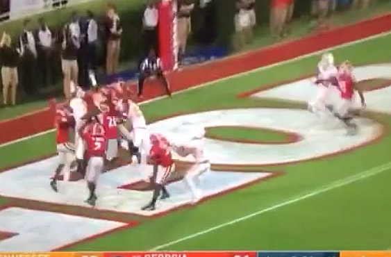 This extraordinary play is all the more insane when you consider that Georgia had scored a go-ahead touchdown — nearly as dramatic — leaving just 10 seconds on the game clock. After a short return, two plays later the Bulldogs could do nothing but stare in dismay as the scoreboard did not favor them.