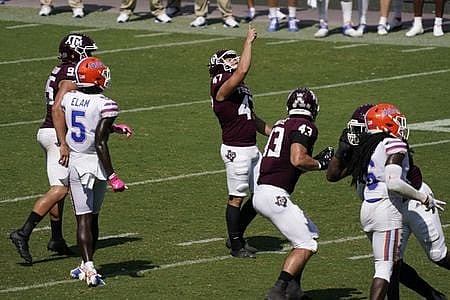 Seth Small connected on a 26-yard field goal as time expired to lift No. 21 Texas A&M to a 41-38 comeback win over No. 4 Florida on Saturday in College Station, Texas.