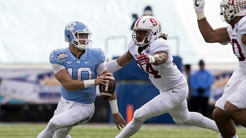 North Carolina quarterback Mitch Trubisky is having a miserable go of it against Stanford in the Sun Bowl. After turning the ball over twice already in the game, he threw his second bad interception of the game to safety Dallas Lloyd.