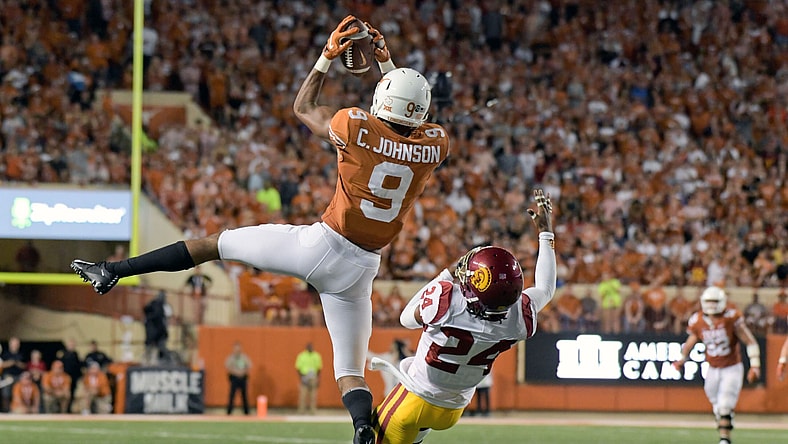 In Saturday’s in-state battle against the TCU Horned Frogs, Texas Longhorns wide receiver Collin Johnson made an outstanding, leaping touchdown catch to put the Longhorns ahead.