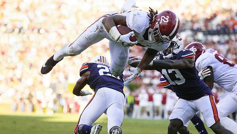 Alabama Crimson Tide running back Najee Harris loves flying over defenders, especially in the Iron Bowl. The junior became Superman in the second quarter with an incredible dive into the end zone for the go-ahead touchdown.