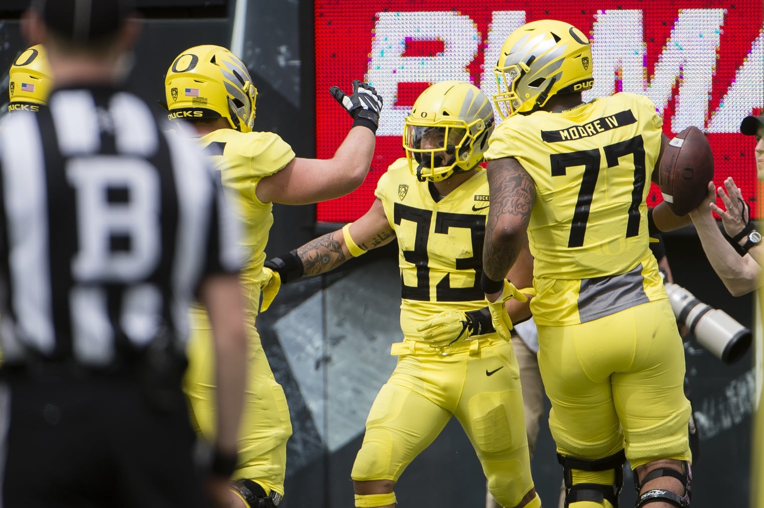 If Oregon’s defense ever gets thin at linebacker, perhaps the coaching staff can call upon Habibi-Likio to become a two-way player. He also seems to make for a better security guard than anyone working on the sidelines this weekend.