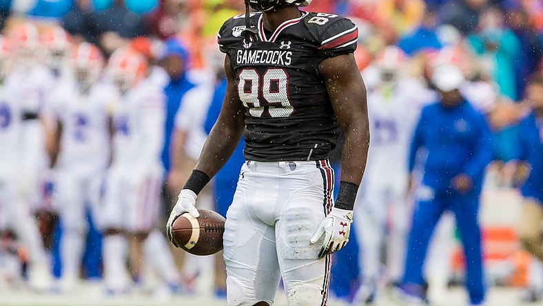 Trailing 17-14 with only seconds remaining before halftime, Gamecocks quarterback Ryan Hilinski tossed the football in Edwards’ direction right before getting blasted. Edwards made the hit worth it for his quarterback as he reached above the defensive back’s head to make a one-handed snag before coming down at the one-yard line.