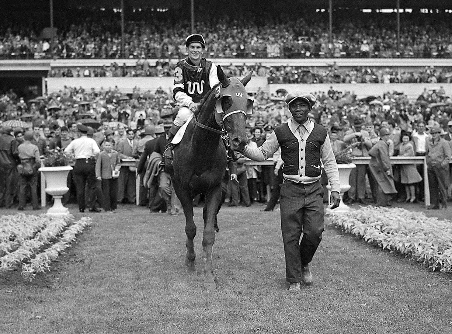 Count Fleet swept the Triple Crown in 1943 with a commanding 3-length victory in the Kentucky Derby. He won an astounding 16 of his 21 career starts. His Derby performance was a precursor to one of the most dominant Belmont Stakes wins by an incredible 25 lengths. Count Fleet’s influence endured through his successful offspring in the breeding shed.