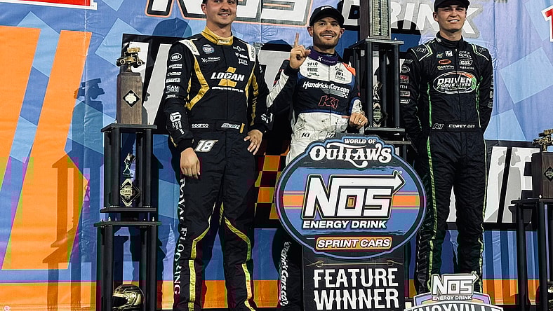 Kyle Larson went back-to-back in the Knoxville Nationals, leading all 50 laps for the second year in a row, to score his third win in the biggest Sprint Car race of the year over the past four seasons. He was flanked on the podium by two of the brightest young stars in the industry in Gio Scelzi and Corey Day.