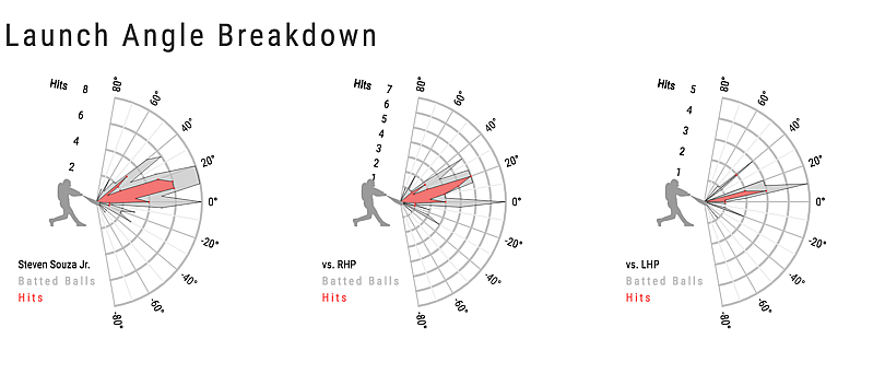 The launch angle is what is impressive for Souza. And he does make some hard contact. But it doesn’t seem to be consistent this year — just a 28.9-percent contact rate and a 16.7-percent home run to flyball ratio.