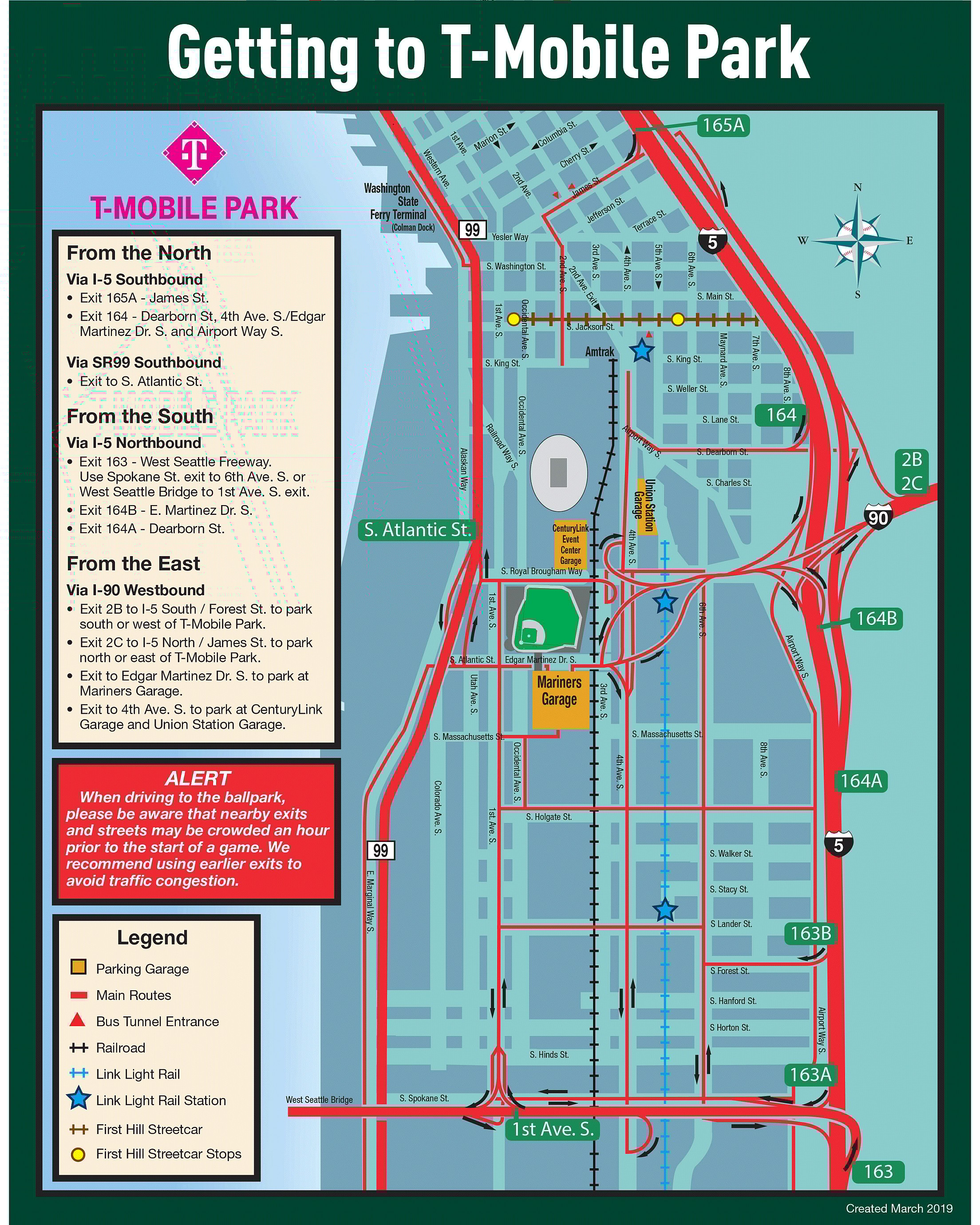 T-Mobile Park offers visitors a wide range of options for parking, with something available for every price range and preferred entrance and exit. We have listed the different parking garages with their prices, but there are many more garages in the area.