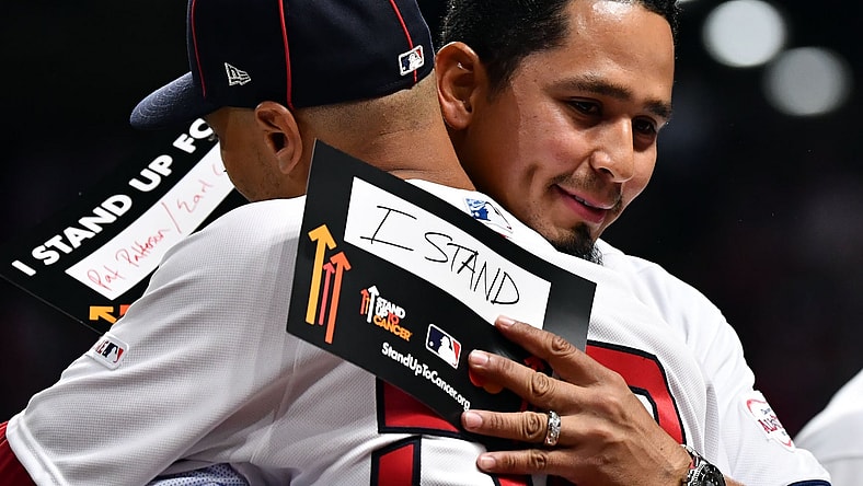 Cleveland Indians pitcher Carlos Carrasco returned to the mound Sunday for the first time since being diagnosed with leukemia in May.