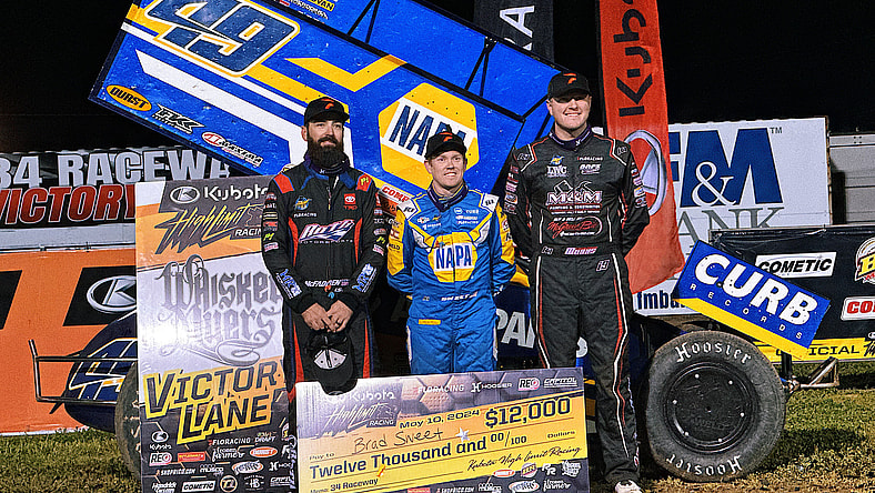 Sweet, who co-owns the series alongside brother-in-law Kyle Larson and streamer FloSports, won the race by ripping the outside as McFadden got bogged down in traffic on the bottom