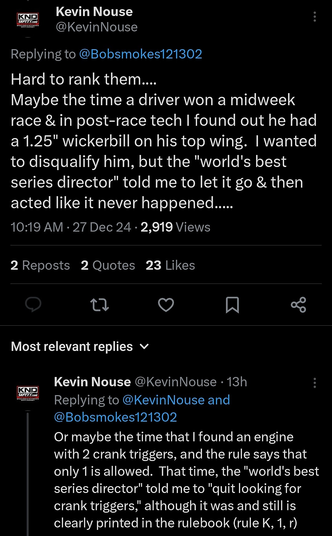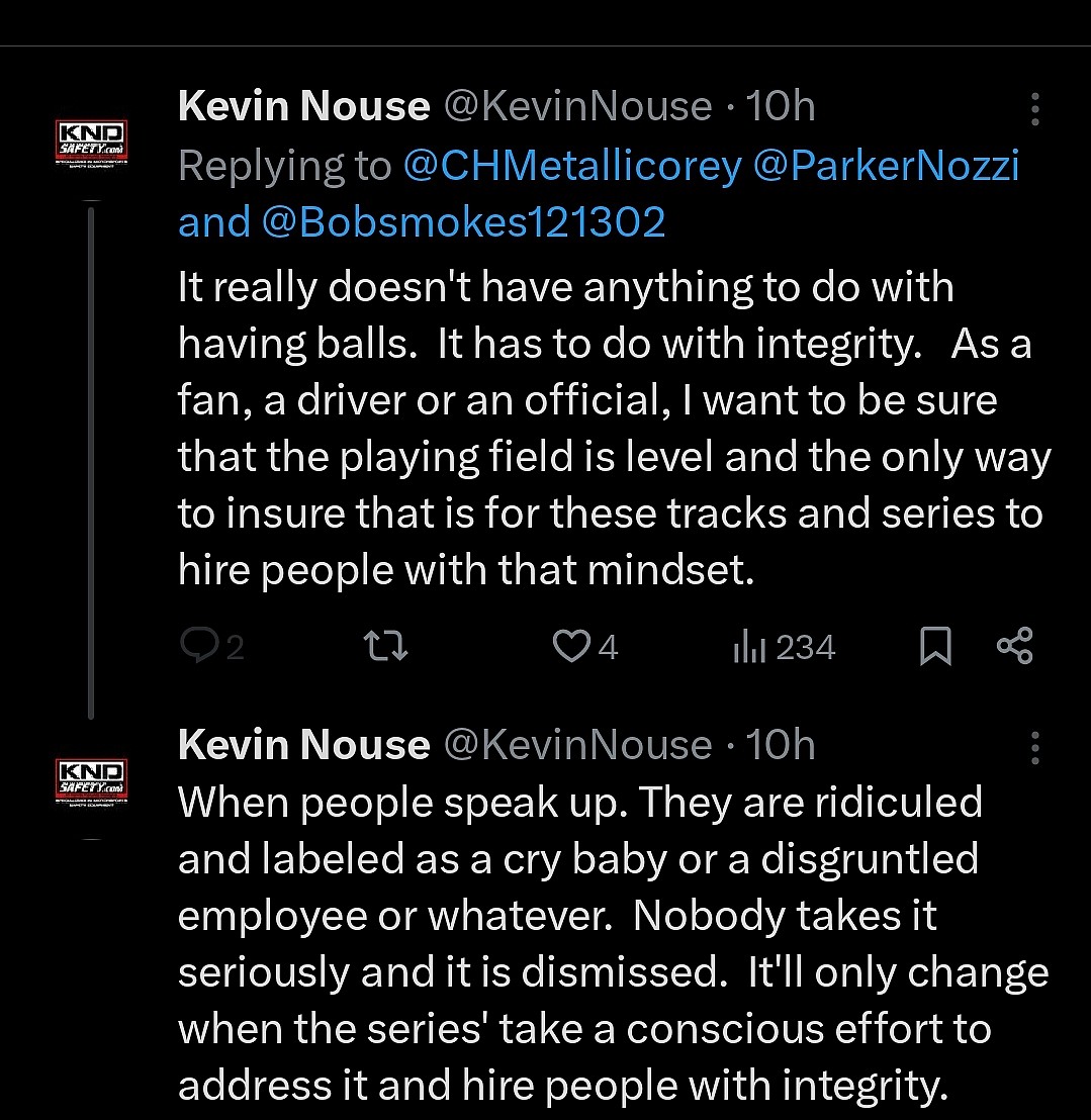 “Sprint car racing is thriving and it’s awesome to see. However, enforcing the rules and having integrity needs to be just as important as any other thing they do. ‘Don’t bring it back,’ ‘quit looking for that,’ or ‘just let it go’ shouldn’t be in a series director or tech director’s vocabulary.”