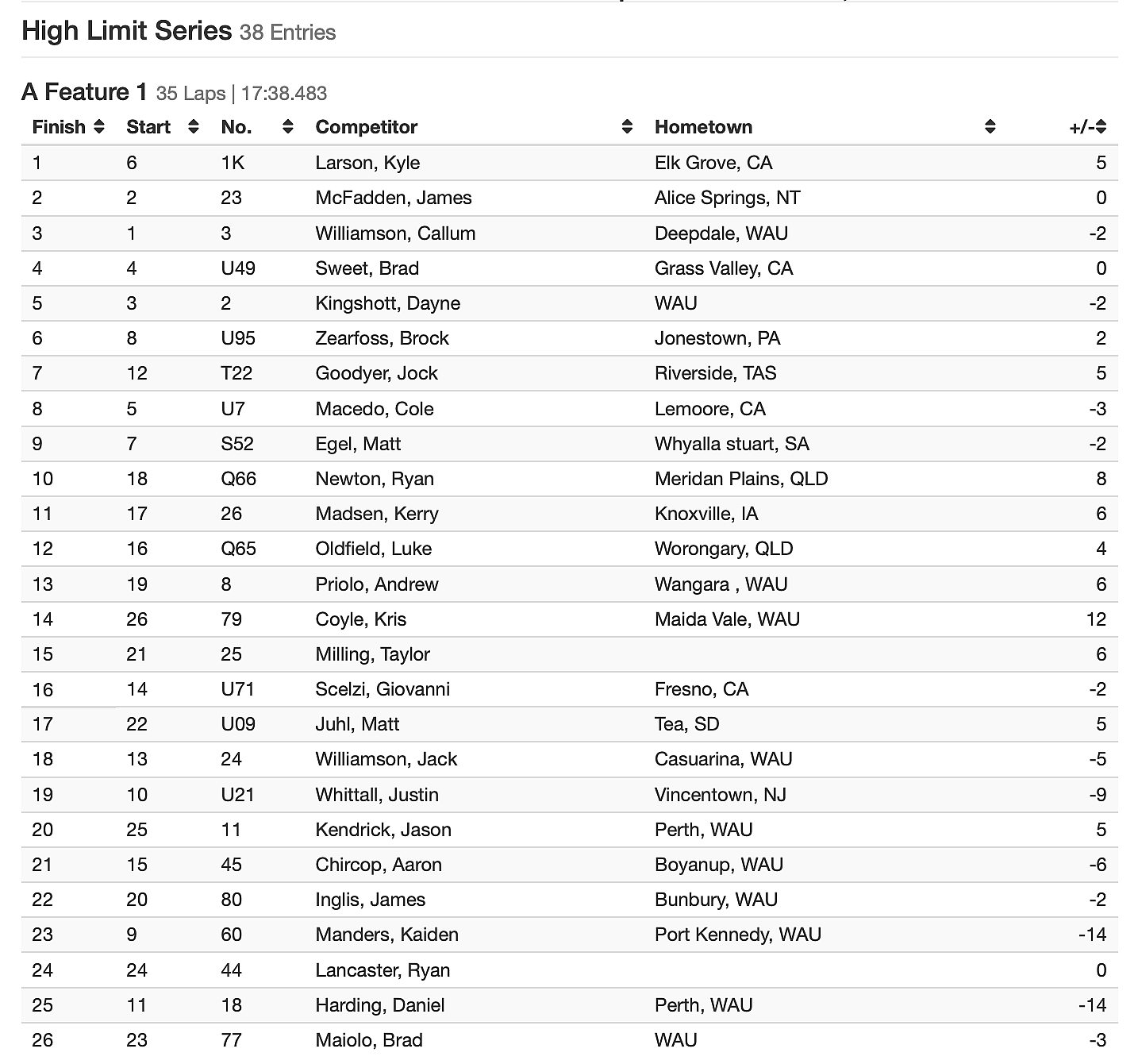 It took around a dozen starts but Kyle Larson finally won a Sprint Car race in ‘The Great Southern Land’ and made it count with a $100,000 payout in the main event of the High Limit Invitational at the Perth Motorplex in Western Australia.