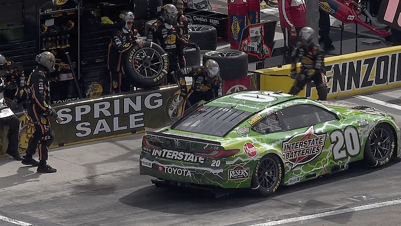 Bell drove away from his pit stall during a lap 108 pit stop but crew chief Adam Stevens quickly realized they had a loose wheel. The veteran crew chief immediately told Bell to find a teammate pit stall and have them service the Joe Gibbs Racing No. 20 car.