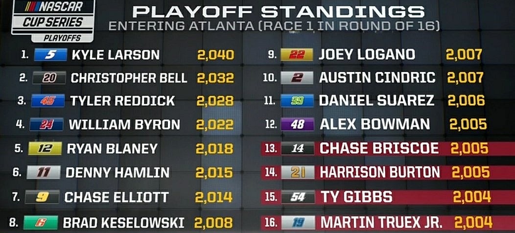 A reminder of the emphasis on winning, there were 14 drivers who qualified into the Round of 16 on wins and just two made it on championship points and Ty Gibbs and Martin Truex Jr. were ninth in tenth in the standings.