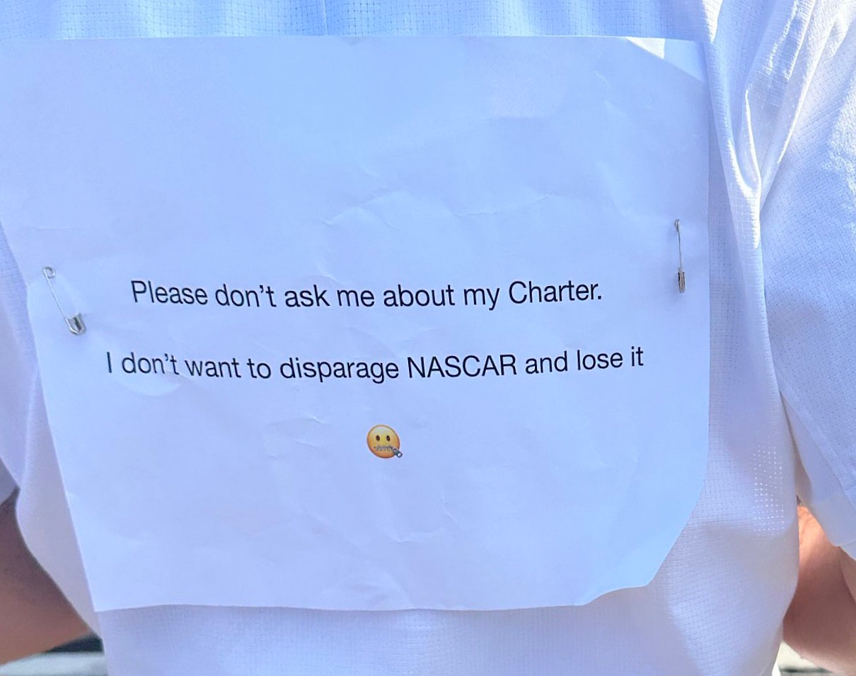 Polk pinned the following message to the back of his shirt on Sunday prior to the Southern 500 at Darlington Raceway, referencing an anti-disparagement clause baked into the proposal.