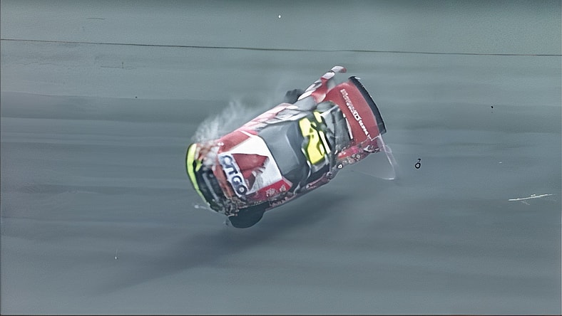 “There’s a wreck on the backstretch. I slow down. My teammate runs into me and pushes me across the grass. I’m thinking, ‘I’m just going to nose off this wall here. It’s not going to hurt.’