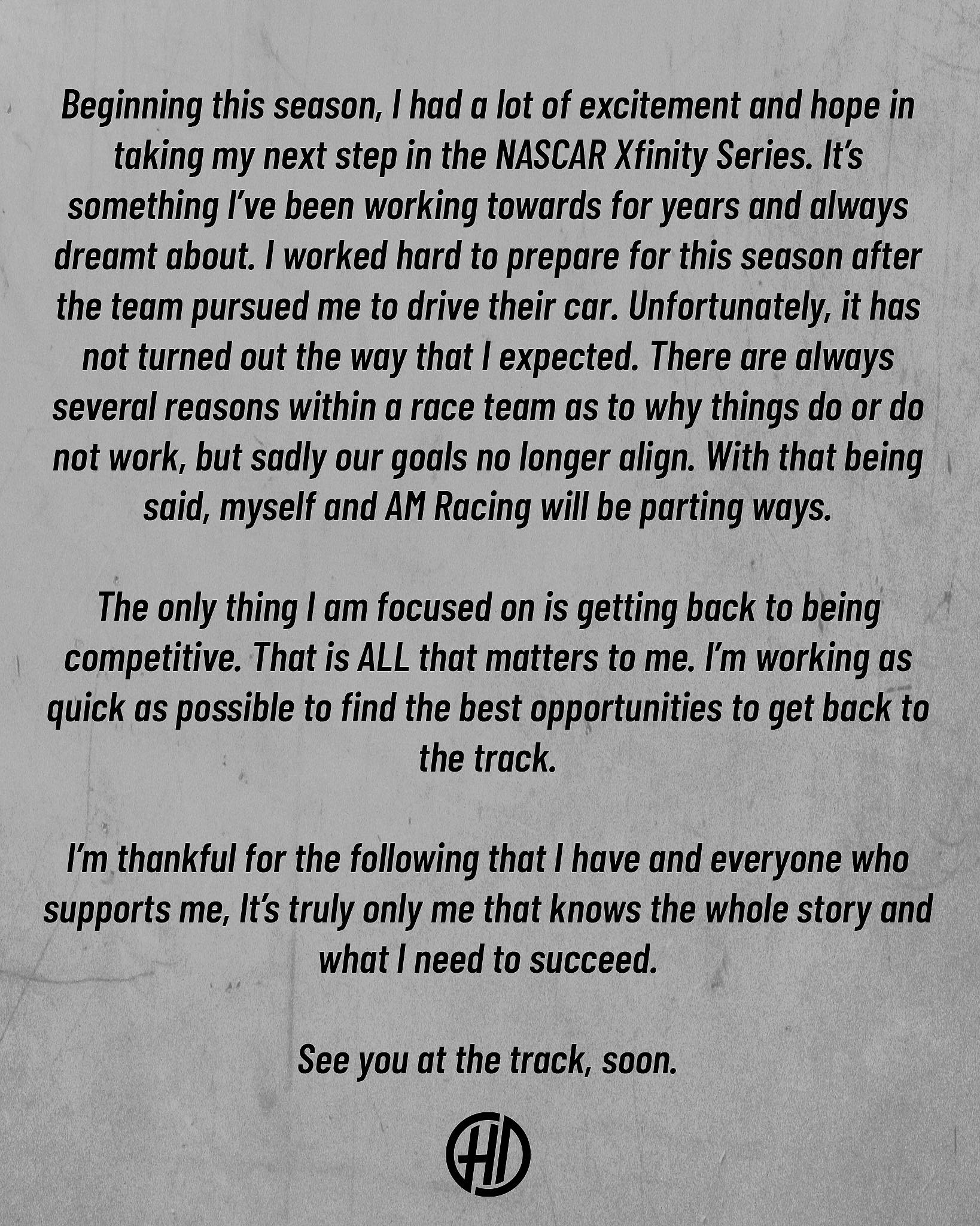 AM Racing and Hailie Deegan have parted ways and will not continue racing together in the NASCAR Xfinity Series.