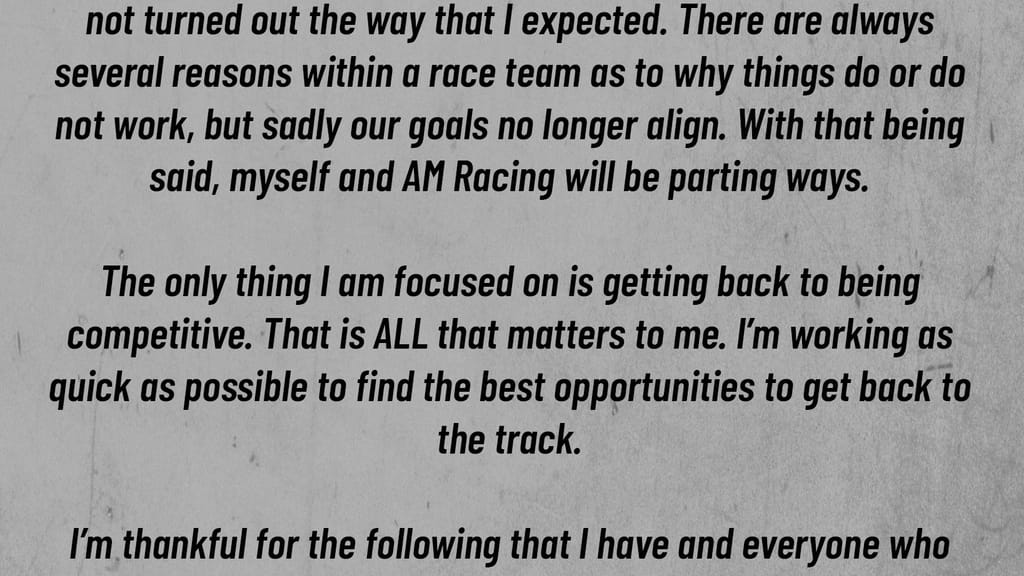 Both Deegan and AM Racing issued statements on Monday confirming the parting of ways.
