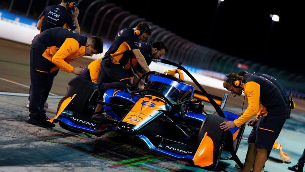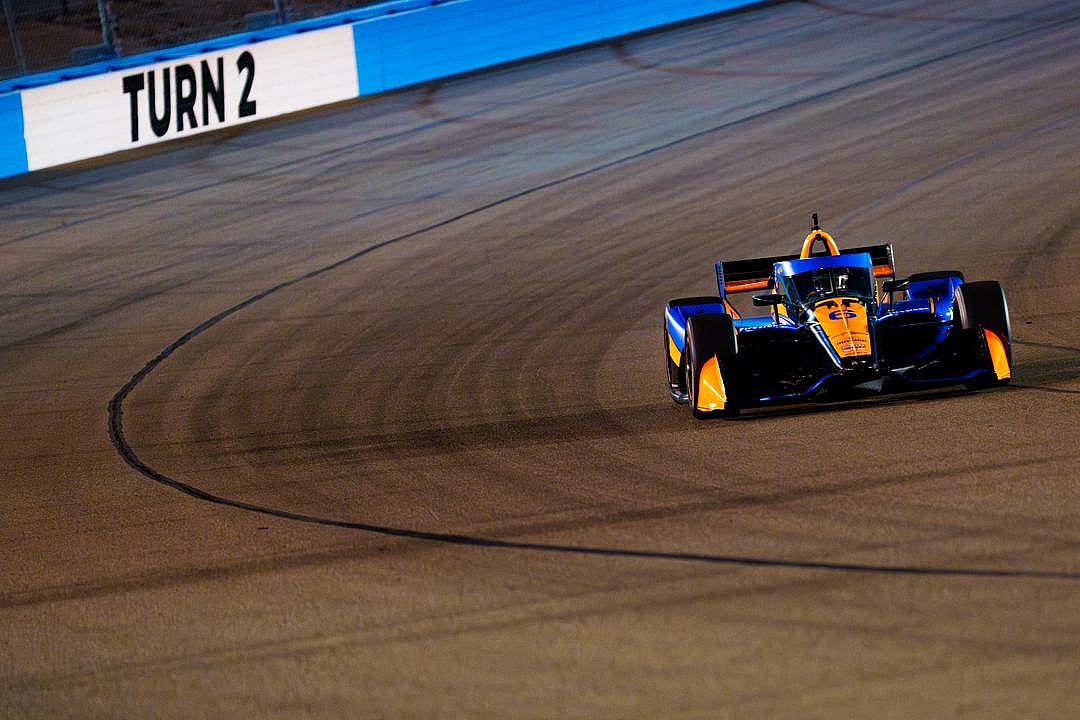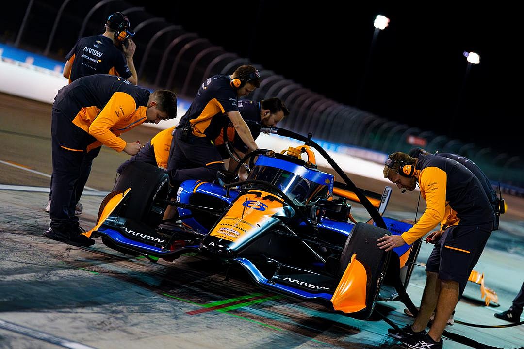 Larson wasn’t even supposed to test until Wednesday but the same storm that resulted in an impromptu Busch Clash on Saturday, one day earlier than scheduled, forced the McLaren Indy team to do the same thing with this test session.
