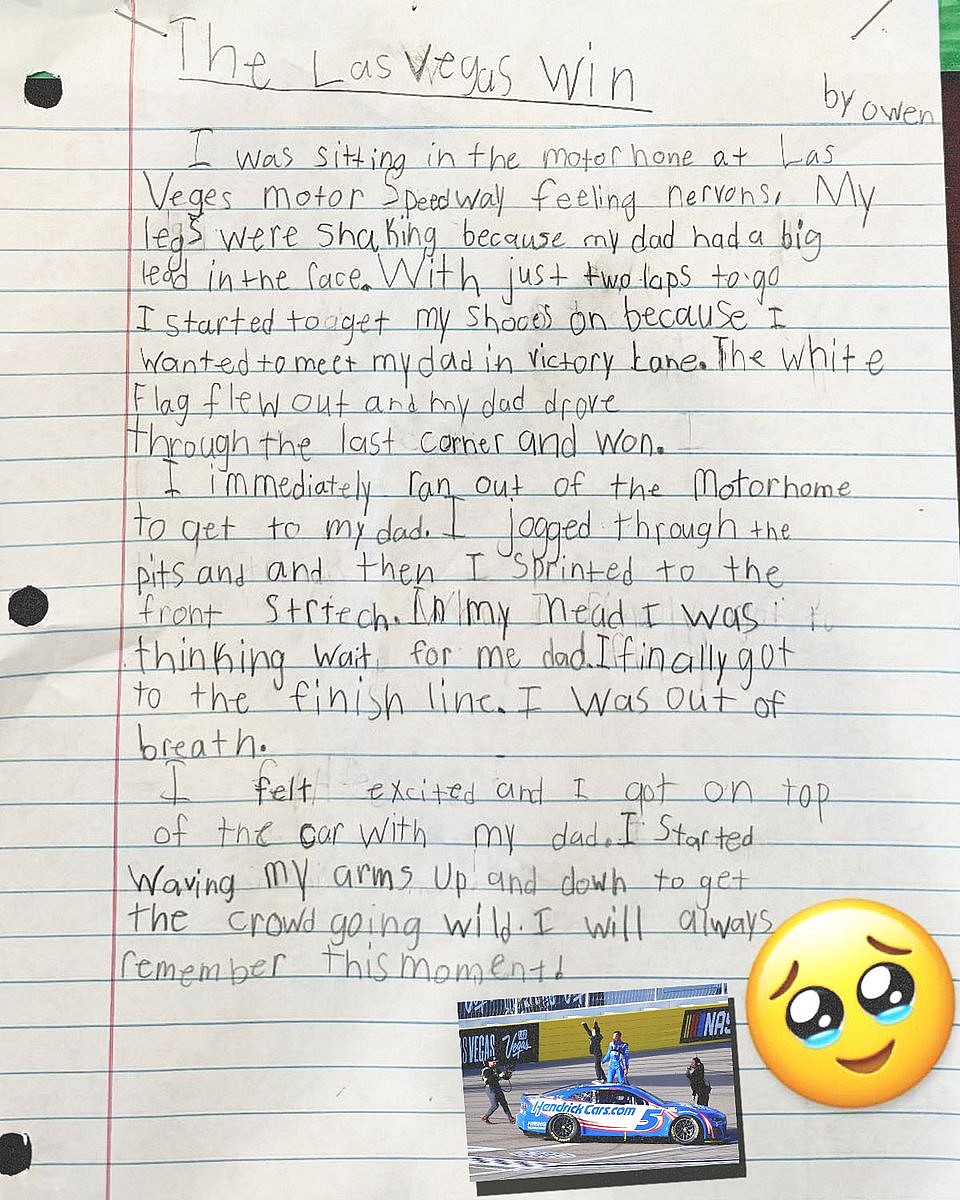 The moment meant a lot to Larson but it meant a lot to his son too as it turns out as Owen wrote a latter about the moment. The following note was shared by NBC Sports.