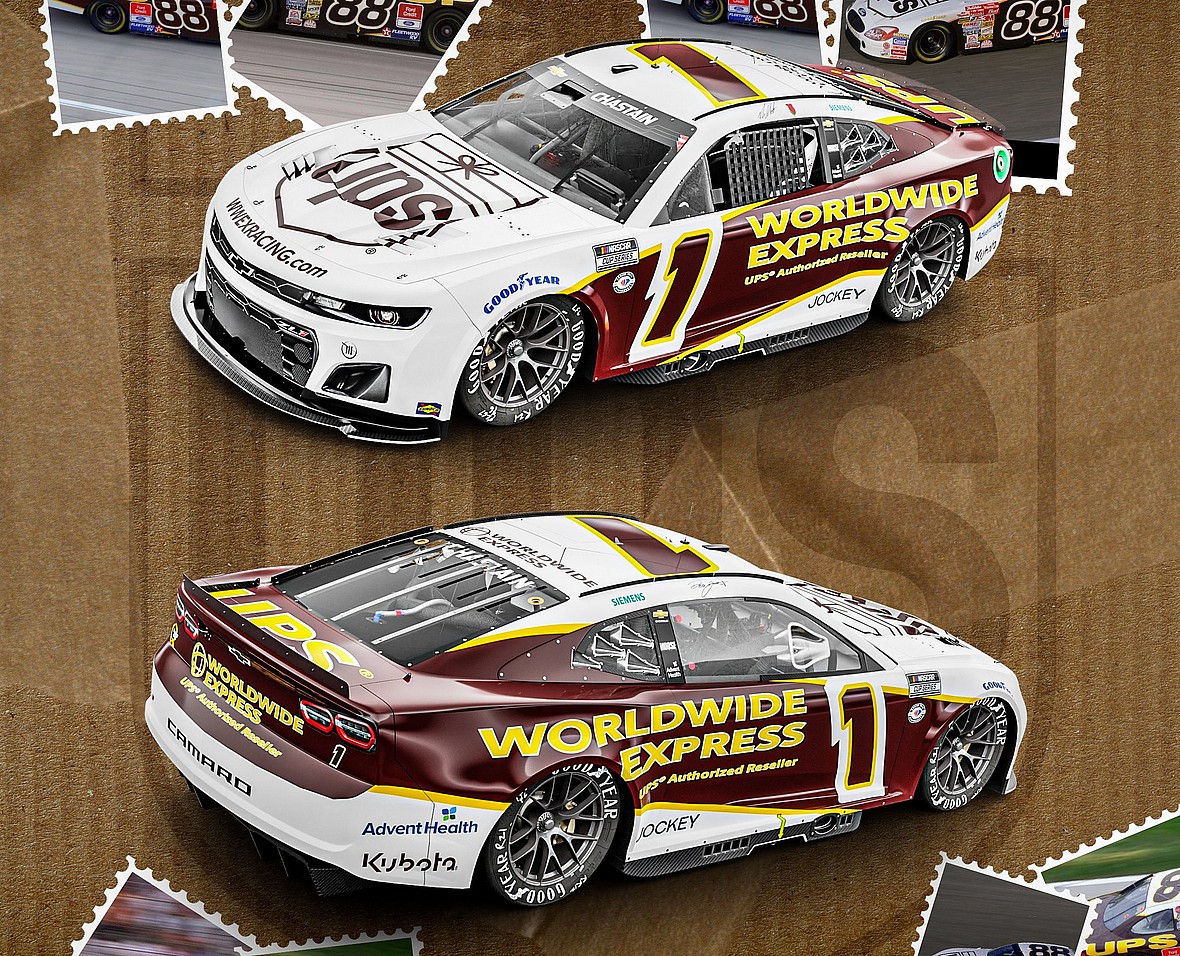 Ross Chastain will throwback to Dale Jarrett’s 2001 No. 88 brown and white UPS car. It is one of two paint schemes that will be a tribute to Jarrett with Chastain’s car actually having the UPS logo due to the connection between the company and Worldwide Express.