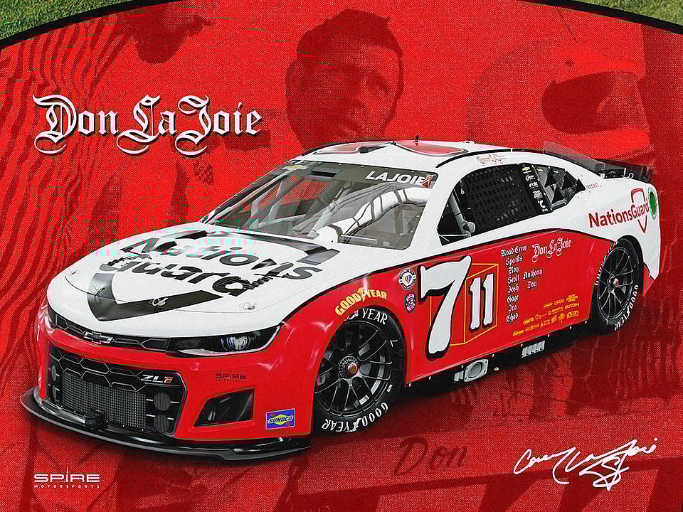 Corey LaJoie will throwback to his grandfather, Don LaJoie, and his 1972 paint scheme at the Danbury Racearena in Connecticut. It is a great nod to LaJoie’s grandfather and the classic look cracks the A-level paint schemes this season.
