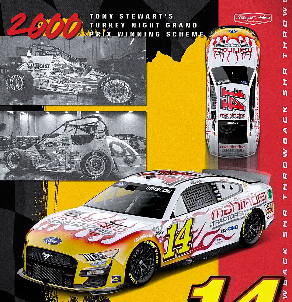 Chase Briscoe will throw back to Tony Stewart’s winning paint scheme at the 2000 Turkey Night Grand Prix. Stewart is the co-owner of Stewart-Haas Racing and drove the No. 14 car before his retirement from the NASCAR Cup Series.