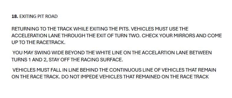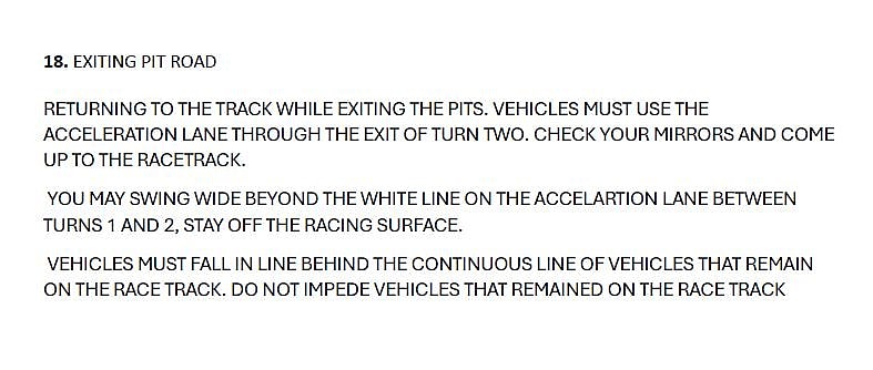 “As you look at the video, it basically says that you have to stay in the acceleration lane as you’re exiting until you exit turn 2,” Sawyer said, “and then you blend up on the racetrack.
