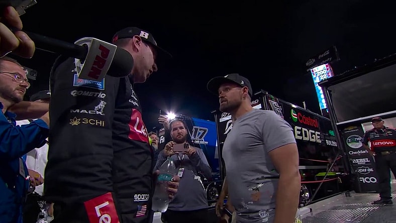Stenhouse was waiting for Busch, at his hauler, and immediately confronted the two-time Cup Series champion over the incident. When he got seemingly unsatisfactory answers, he tossed a right hook. His dad, Rick Stenhouse, jumped into the fray and was indefinitely suspended.