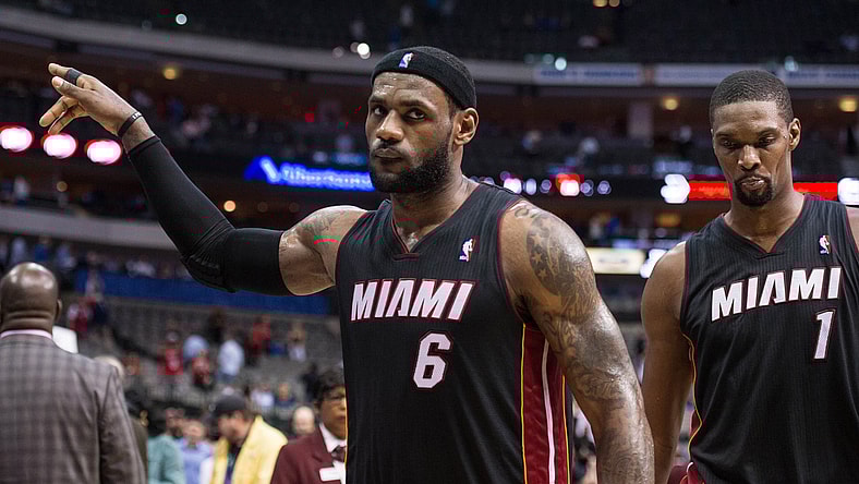 James debuted in tonight’s Miami Heat vs New York Knicks basketball game sporting what looks like the mask of an armed bank robber. Fans are either getting distracted or frightened as they are watching James running around trying to protect his nose from meeting a ball.