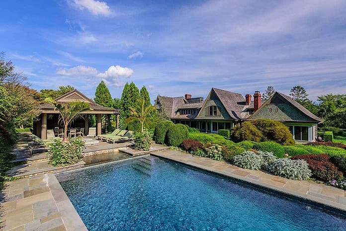 The real estate giant Sotheby’s is listing the estate for $14.995 million. It includes five bedrooms, eight baths and is a whopping 7,400 square feet. It also sits on 3.2 acres of land, includes a 55-foot heated pool with a waterfall, poolside cabana, summer outdoor kitchen, a hot tub, tennis court and a gym.