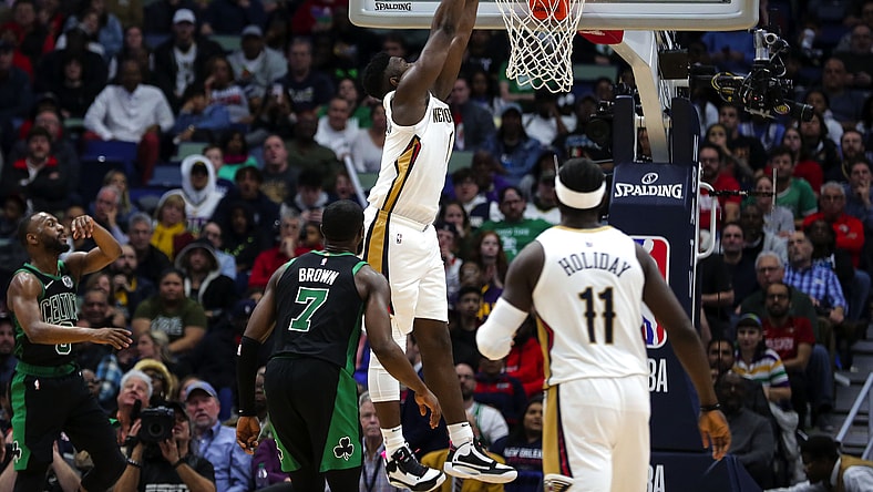 On Friday night, Jrue Holiday was a bit off target on an alley-oop pass to Zion. The ball seemingly was too high and ended up hitting the top of the backboard, only Williamson somehow got up there, picked it off the glass and threw it down.