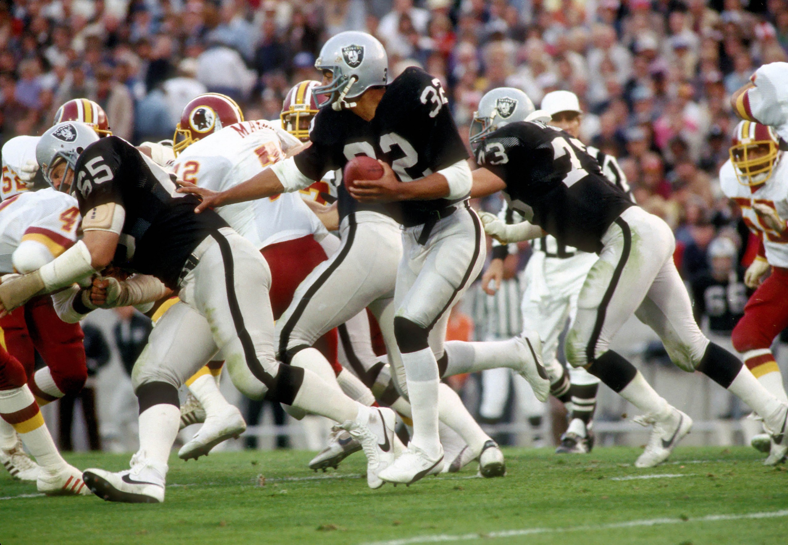 The Oakland Raiders were already well ahead of Washington, 31-9 in the fourth quarterback, when quarterback Jim Plunkett turned and handed the ball to Allen.
