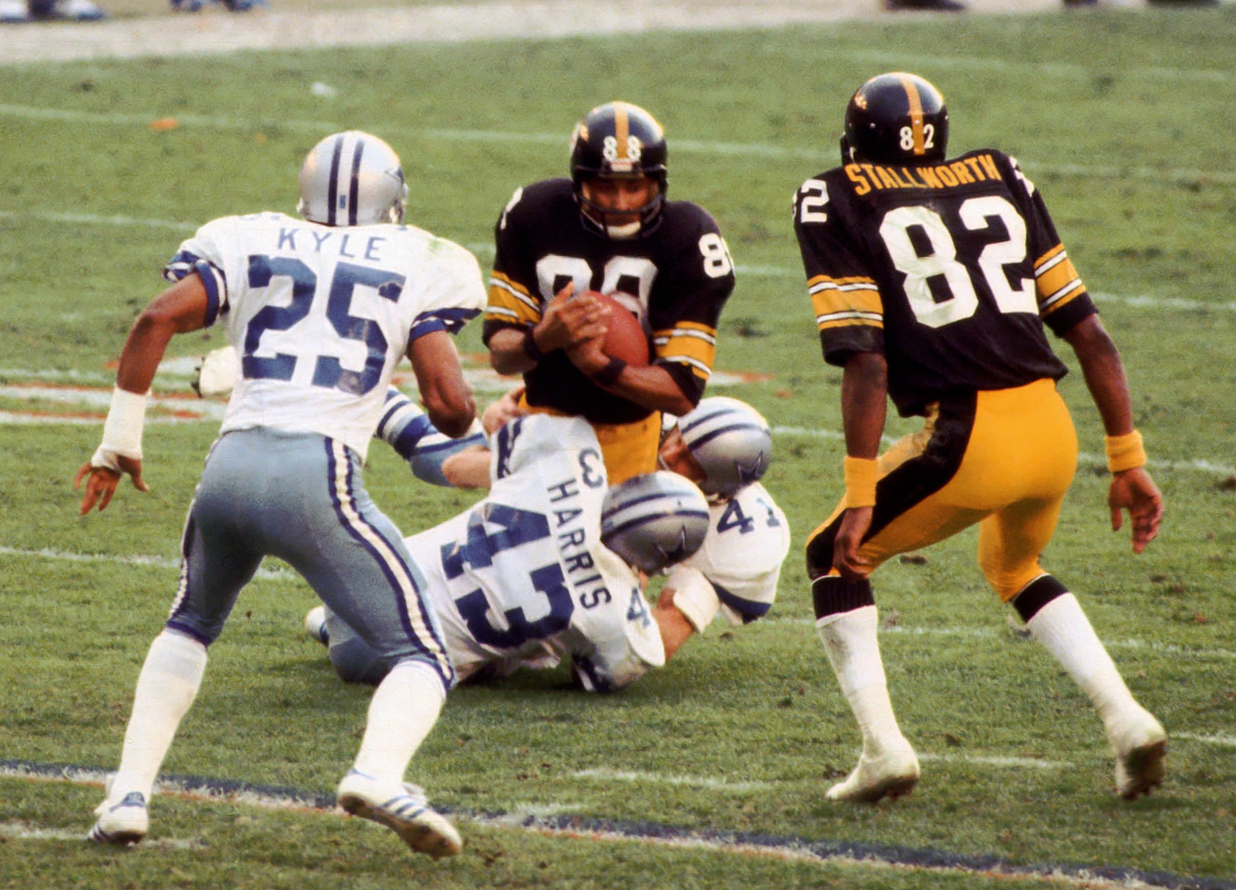 With the Pittsburgh Steelers backed up on their own 10-yard line, quarterback Terry Bradshaw threw deep to Swann, who went up for the ball against Dallas Cowboys defensive back Mark Washington and made a juggling catch on his way down for a 53-yard gain.