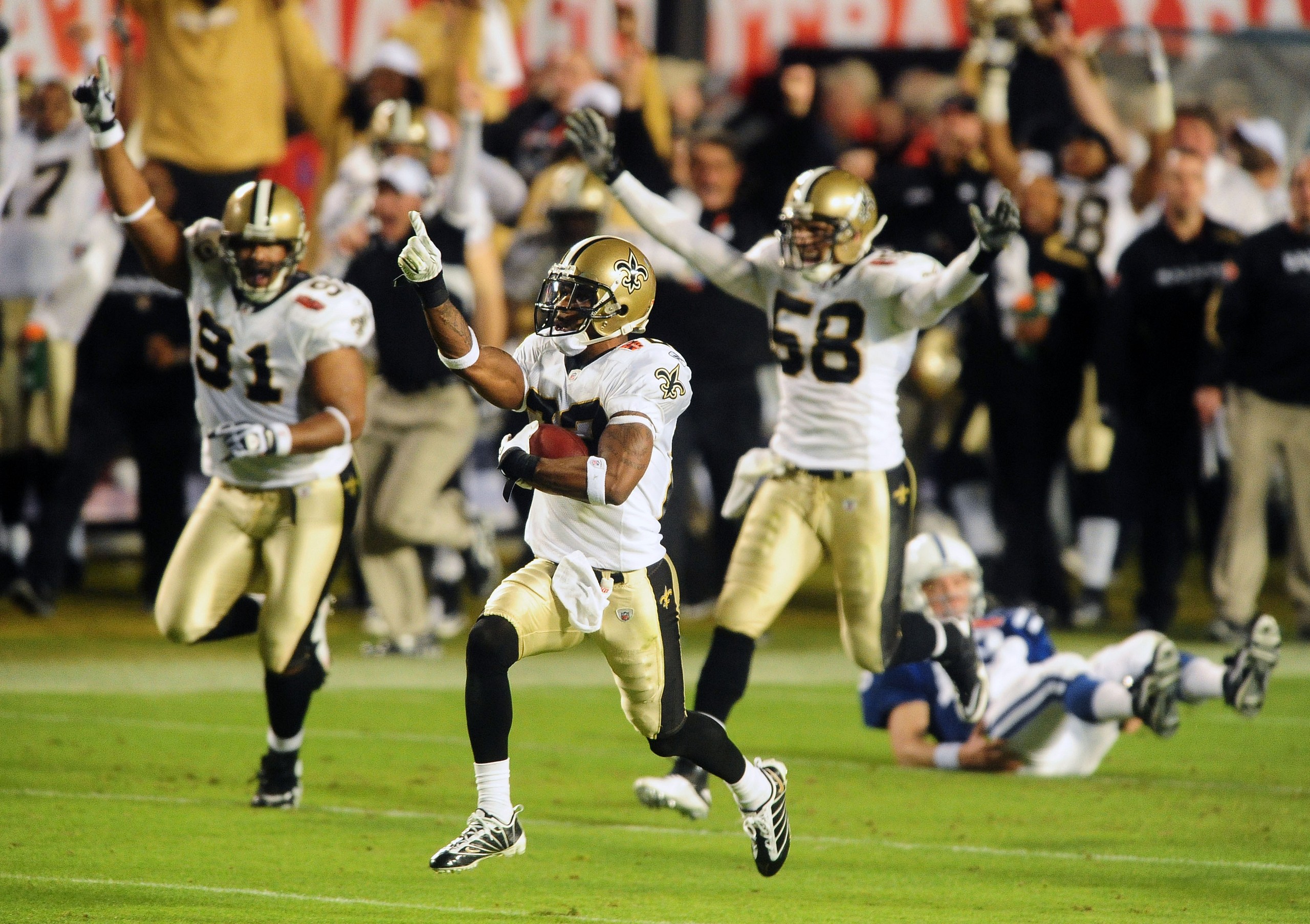 The Saints were up 24-17 late in the fourth quarter against the Peyton Manning-led Indianapolis Colts. And Manning was driving the Colts into Saints’ territory for what could have been a game-tying touchdown. But that didn’t happen because of Porter. With 3:24 left, he picked off Manning and took it 74 yards to the house to secure the Saints’ 31-17 win and first Super Bowl title. Drew Brees was the game’s MVP, and rightfully so, but Porter was the defensive star.