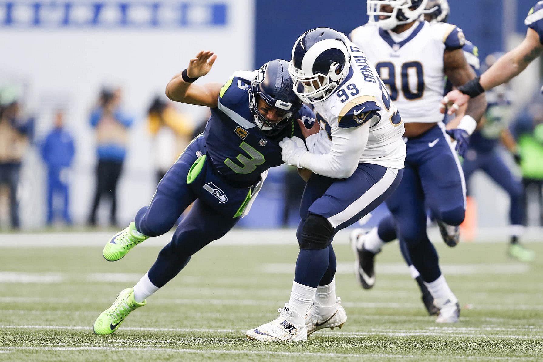 Donald has been a complete freak of nature for a Rams team that heads into this week’s best matchup against the Chiefs with an 9-1 record. He recorded 2.5 sacks in last week’s narrow win over the Seattle Seahawks and has a league-high 12.5 sacks on the season. The reigning NFL Defensive Player of the Year has also racked up 26 quarterback hits and 16 tackles for loss.