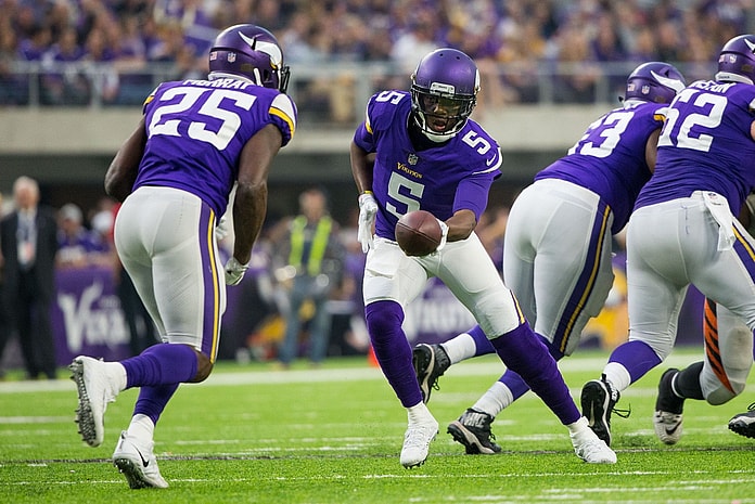 Bridgewater has been medically cleared to play professional football after suffering a ghastly knee injury in August of 2016. This is awesome and something that was speculated might never be possible for him to do again. But potential teams interested should beware. Spending too much for this former Vikings first-round pick from 2014 might come back to bite. Other than throwing an interception in two passing attempts late last season, we must look at his numbers from when he last played.