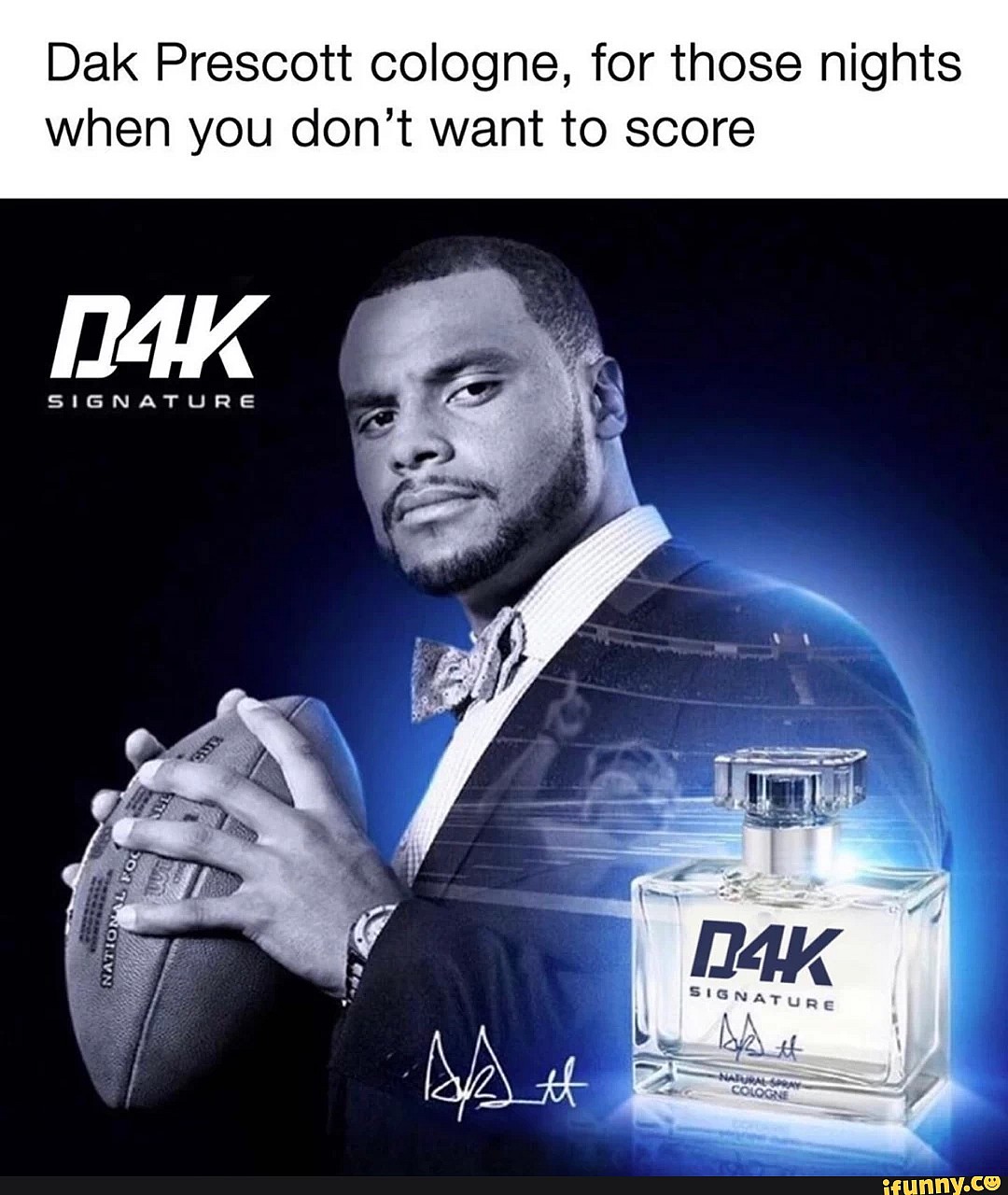 The thing is, Dak Prescott really does have his own cologne, but that’s not the point. The gold here is whoever came up with the punchline parody. For the record, Prescott has only started 17 games in his career without scoring, and we’re not going into the other aspect of what this meme really means. You have a strong imagination.