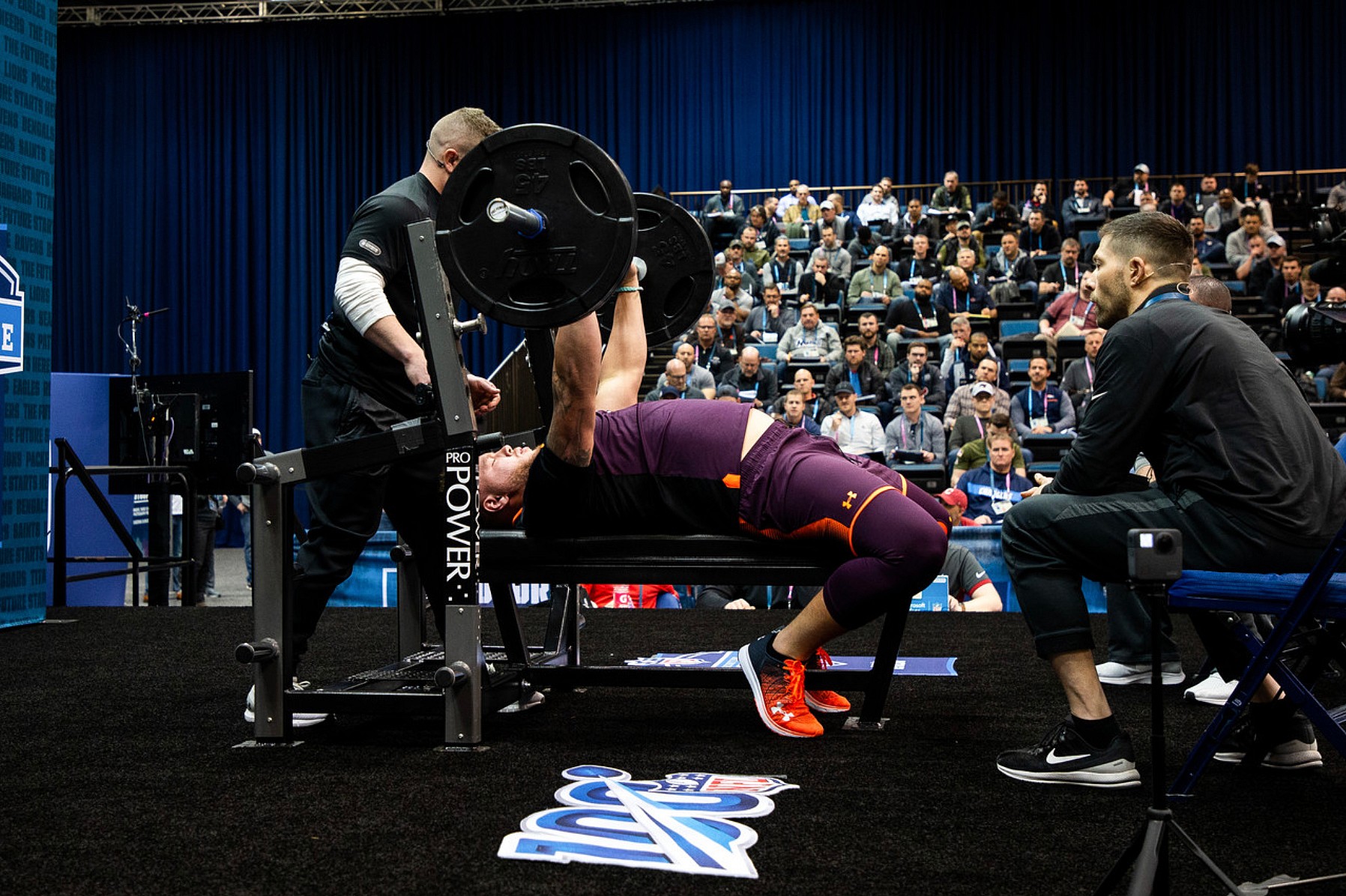 Rather than focusing on pure strength at the NFL Combine, the bench press test involves lifting 225 pounds as many times as possible. It indicates a player’s ability to sustain strength throughout a game, especially for linemen.
