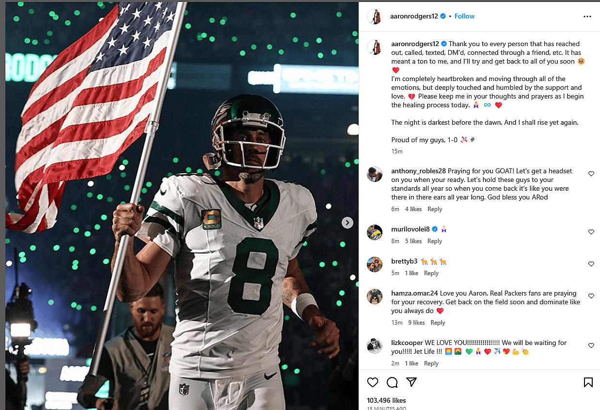 A couple days removed from the injury, Rodgers released a statement on Instagram. In said statement, the all-time great seems to suggest that he’ll return in 2024.