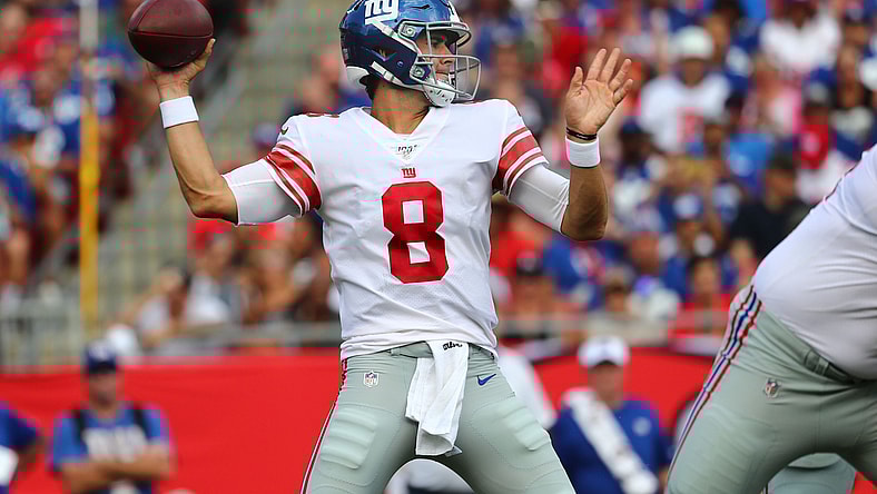 In his first NFL start, Jones lit up the Tampa Bay Buccaneers. He passed for 336 yards, despite getting sacked five times, and despite losing Saquon Barkley to injury early in the game. He also tossed two touchdowns.