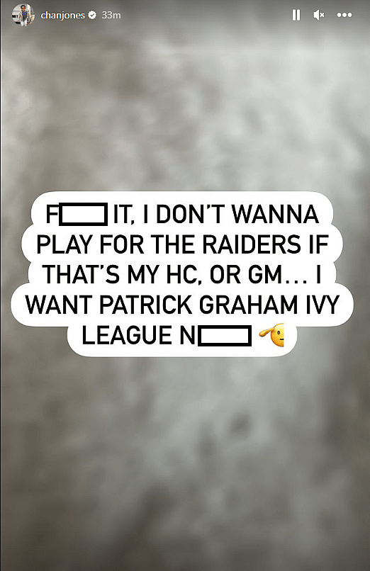 In a follow-up Instagram story, he wrote “[Expletive] it. I don’t wanna play for the Raiders if that’s my HC or GM. … I want Patrick Graham Ivy League [expletive].” Graham is the team’s current defensive coordinator.